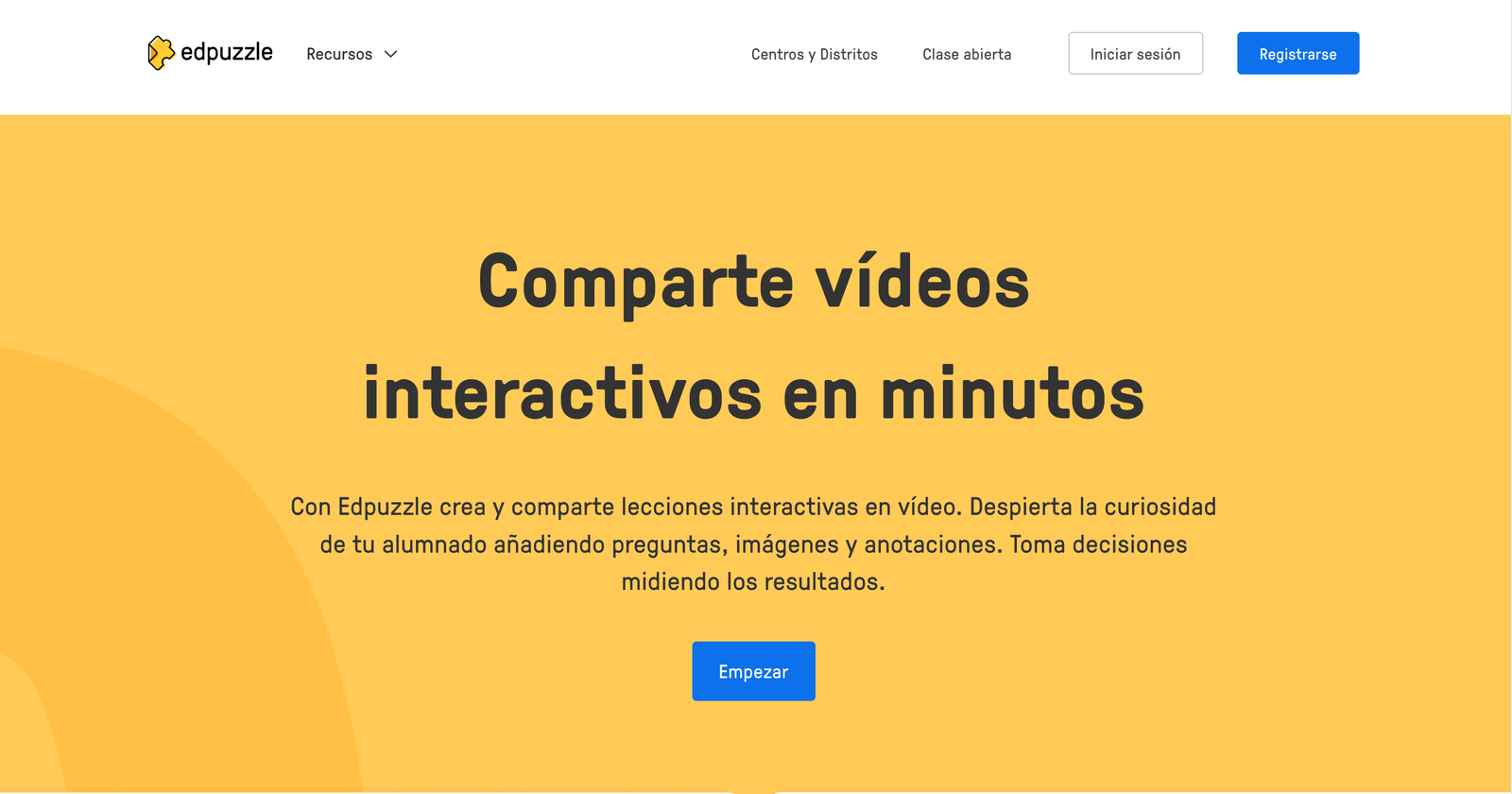 Edpuzzle es una herramienta educativa que permite a los docentes crear videos interactivos con cuestionarios integrados, ideal para complementar el aprendizaje autónomo o de refuerzo. Puedes usar videos educativos existentes o crear los tuyos propios.